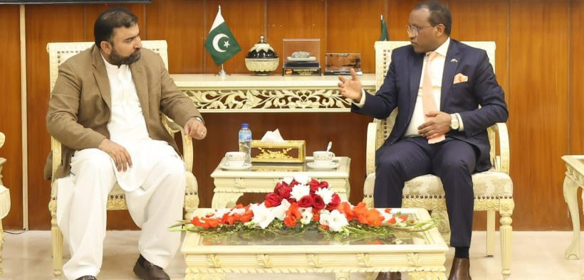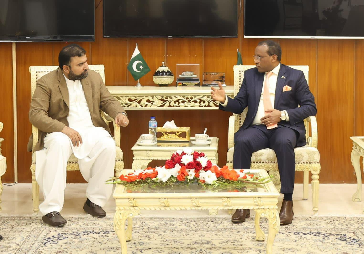 Islamabad 13 December 2023: His Excellency Jemal Beker Abdula, Ambassador Extraordinary and Plenipotentiary of the Federal Democratic Republic of Ethiopia (FDRE) to the Islamic Republic of Pakistan, engaged in fruitful discussions with Caretaker Interior Minister His Excellency Sarfraz Bugti during a meeting at the minister’s office.