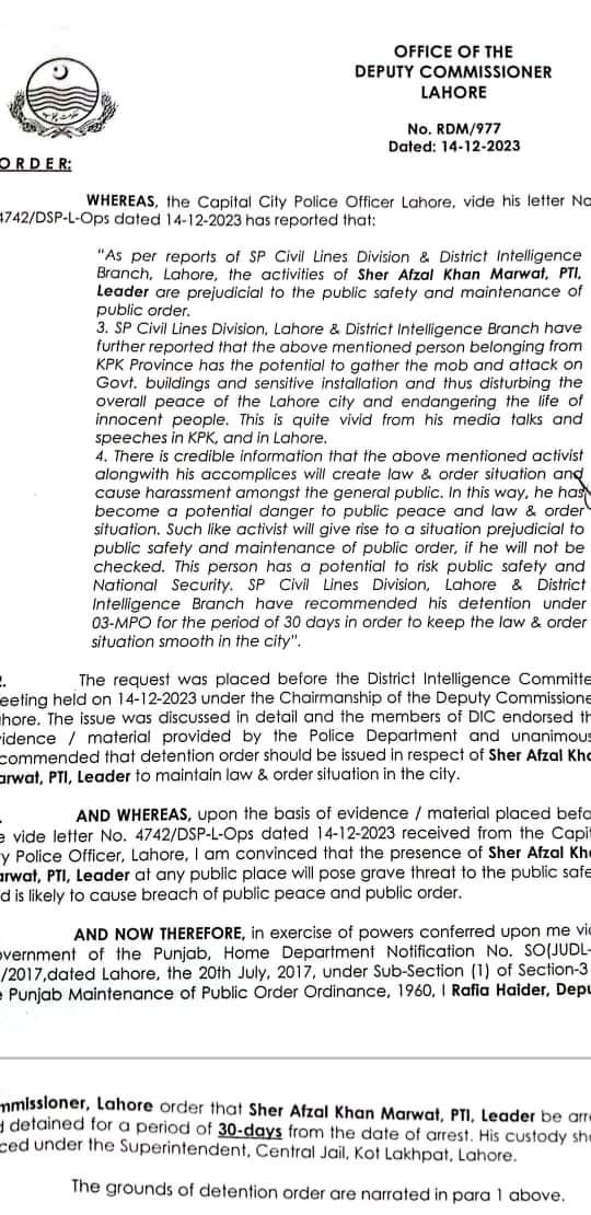 پاکستان تازہ ترین لاہور(اردو ٹائمز) شیر افضل مروت نظر بند، نوٹیفکیشن جاری admin 2023-12-15 Share لاہور شیر افضل مروت نظر بند، نوٹیفکیشن جاری شیر افضل مروت کو 3 ایم پی او کے تحت گرفتار کرکے کوٹ لکھپت جیل منتقل کردیا گیا نوٹیفیکیشن جاری کردیا گیا