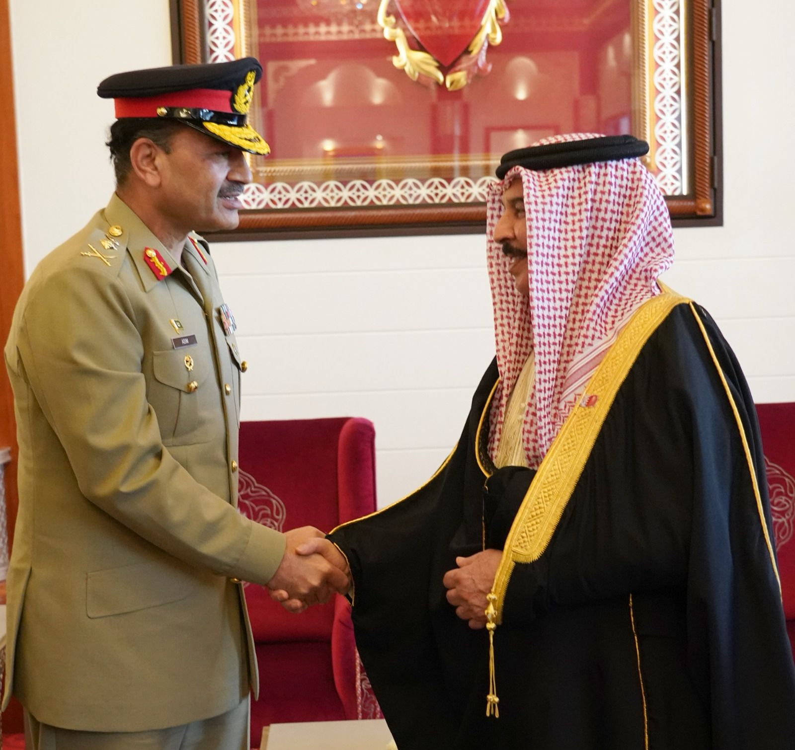 General Syed Asim Munir, NI (M), Chief of the Army Staff (COAS) is on a two days official visit to Kingdom of Bahrain. He called upon H.M The King, Hamad bin Isa Al Khalifa, King of Bahrain, Crown Prince, H.R.H Salman bin Hamad Al Khalifa, H.E. Field Marshal Khalifa bin Ahmed Al Khalifa, Commander of Bahrain Defence Forces and H.H General Shaikh Mohammad bin Isa Al Khalifa, Commander of Bahrain National Guard.