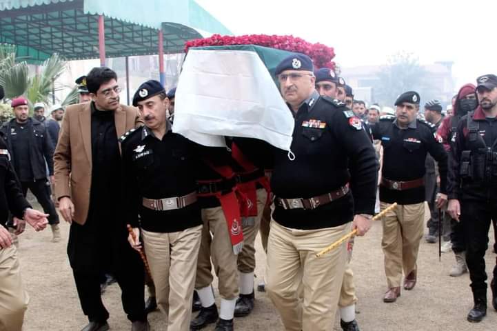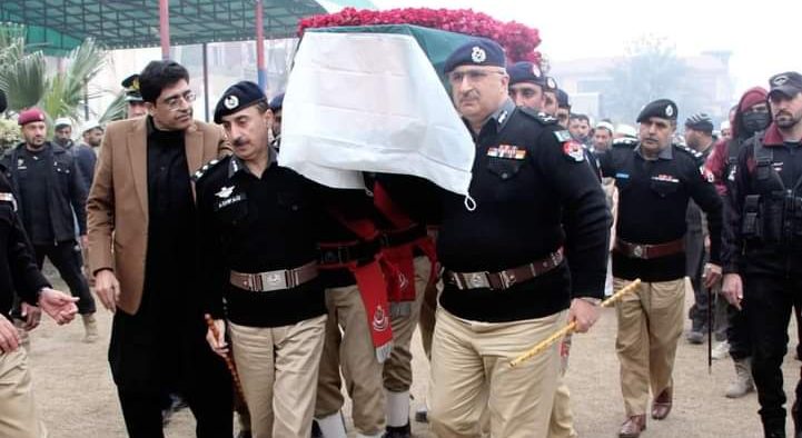 * IGP Khyber Pakhtunkhwa Akhtar Hayat Khan, Additional Chief Secretary Abid Majeed, CCPO Peshawar Ashfaq Anwar, DIGCTD Imran Shahid, SPCTD Captain (Rtd) Najam Hussain Liaquat, Commissioner Peshawar Muhammad Zubair Khan. Chief Traffic Officer Peshawar Dr. Zahidullah along with SPs, DSPs and other senior officers participated in the funeral prayer.
