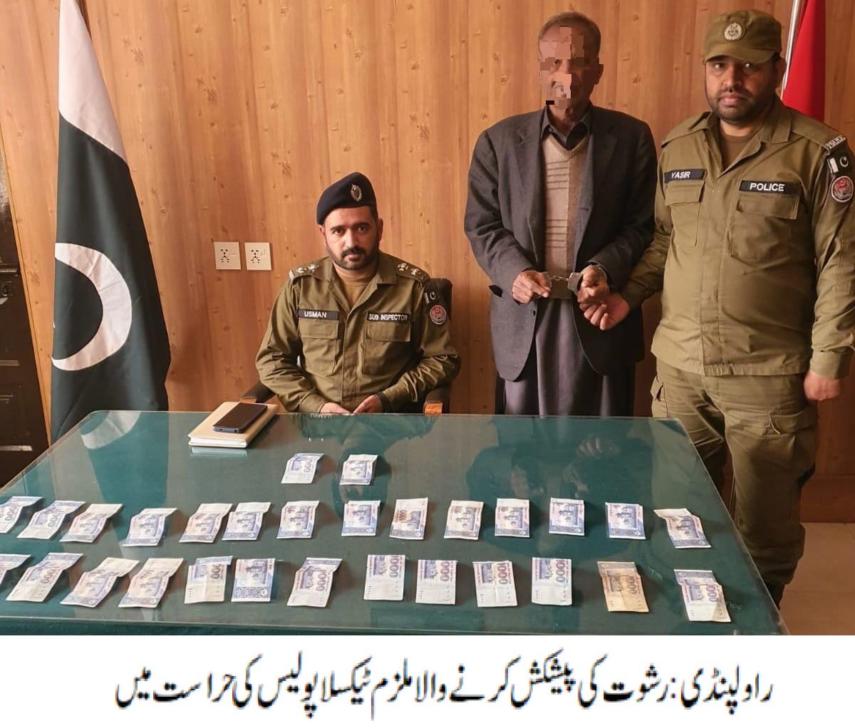 راولپنڈی(اردو ٹائمز) ٹیکسلا پولیس کی کاروائی، رشوت کی پیشکش کرنے والا ملزم گرفتار