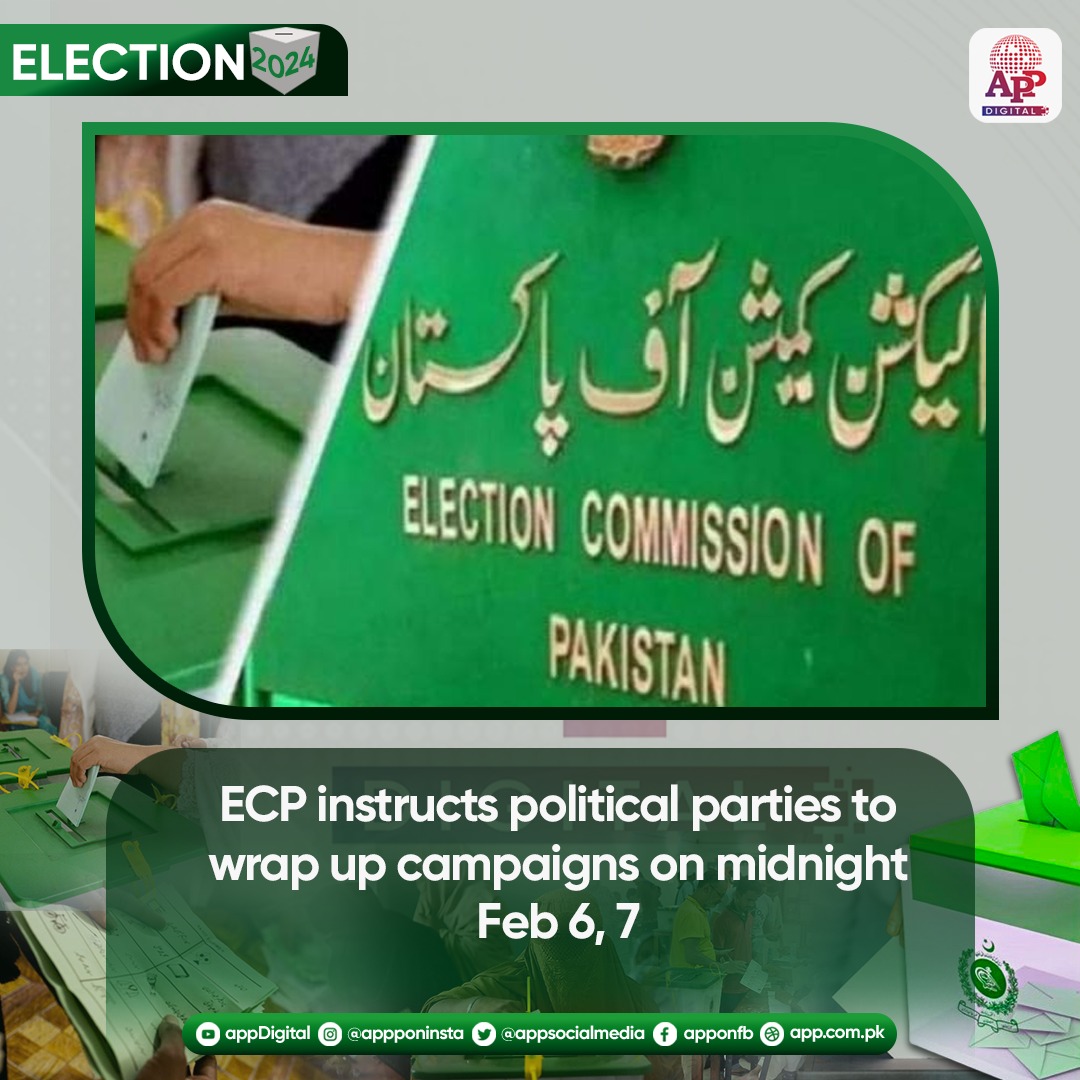 The Election Commission of Pakistan (ECP) has directed political parties and candidates across the country to conclude their election campaigns by midnight on February 6 and 7, 2024.