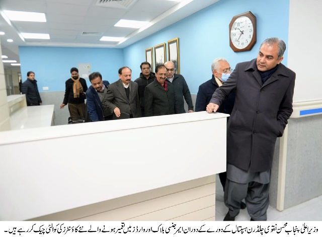Lahore(Urdu Times): Chief Minister Punjab Mohsin Naqvi has ordered to complete the upgradation work of emergency and wards of Children Hospital Lahore without delay to ensure its opening next week.