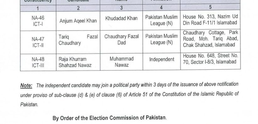 پاکستان تازہ ترین اسلام آباد(اردو ٹائمز) الیکشن کمیشن نے اسلام آباد کے تینوں حلقوں کے ایم این ایز کے نوٹیفکیشن جاری کردیے admin 2024-02-12 Share الیکشن کمیشن نے اسلام آباد کے تینوں حلقوں کے ایم این ایز کے نوٹیفکیشن جاری کردیے #ElectionResults2024
