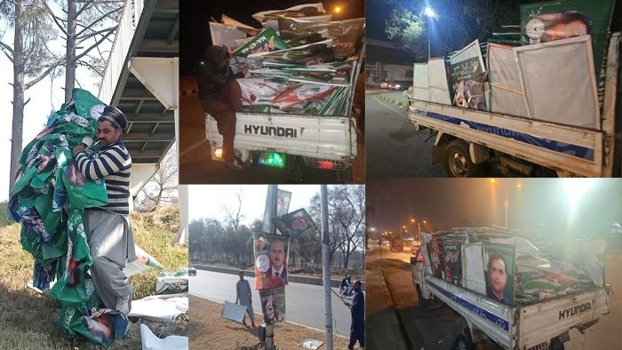 الیکشن 2024 کے مکمل ہونے کےبعد ڈی ایم اے کی طرف سے اسلام آباد کے مختلف سیکٹرز سے سٹیمرز، بینرز اور جھنڈوں کو 3 فیزز میں اتارنے کی حکمت عملی بنائی گئی۔