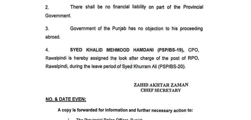 آر پی او راولپنڈی سید خرم علی کے بیرون ملک 14 دن کی رخصت پر جانے کا معاملہ