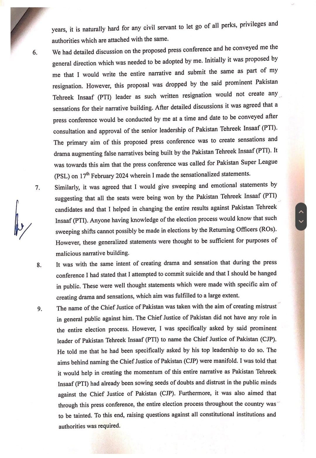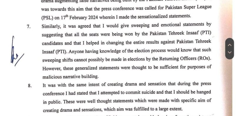 “| take full responsibility for my actions and surrender myself before the authorities for any kind of legal action,” Chatha said in a statement to the Election Commission of Pakistan (ECP).