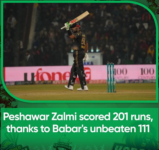 English News سپورٹس Lahore(Urdu Times): PSL 13th Match PZ vs IU admin 2024-02-27 Share Peshawar Zalmi scored 201 runs, thanks to Babar’s unbeaten 111. PSL 13th Match PZvsIU