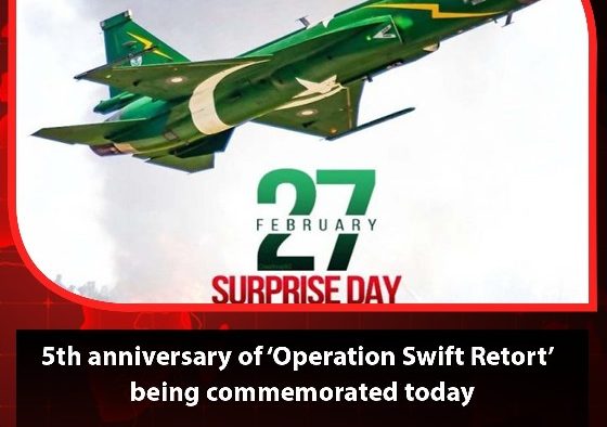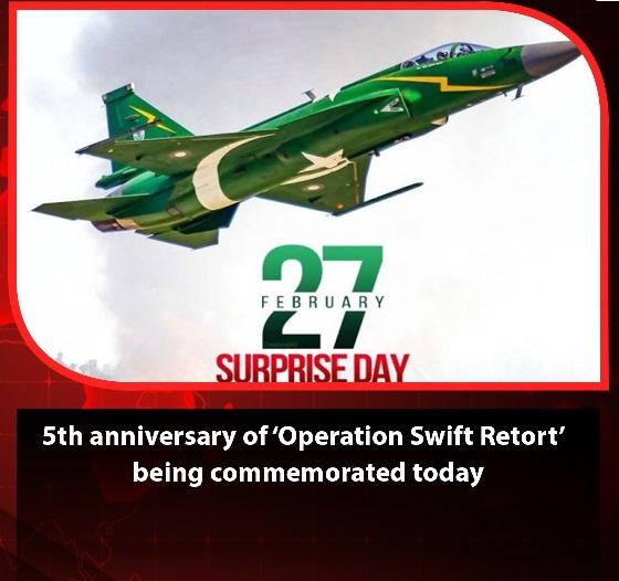 English News تازہ ترین Islamabad(Urdu Times) : The fifth anniversary of “Operation Swift Retort” admin 2024-02-27 Share The fifth anniversary of “Operation Swift Retort” is being commemorated today to pay tribute to the valiant Armed Forces of Pakistan for demonstrating their resilience and resolve against Indian attempt to carry out a misadventure.