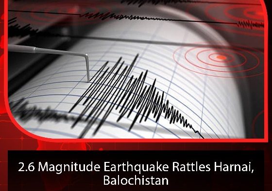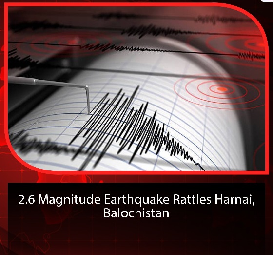 An earthquake measuring 2.6 on the Richter scale jolted Harnai and its adjoining areas in Balochistan province on early Friday. According to the National Seismic Monitoring Center, the epicenter of the earthquake was 36km away from the Harnai area at a depth of 24 kilometers.