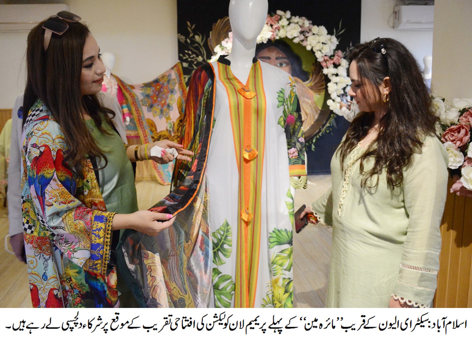 اسلام آباد(اردو ٹائمز) خواتین ملبوسات کی معروف ڈیزائنر مائرہ مین کے پہلے پریمیم لان کلیکشن کی افتتاحی تقریب
