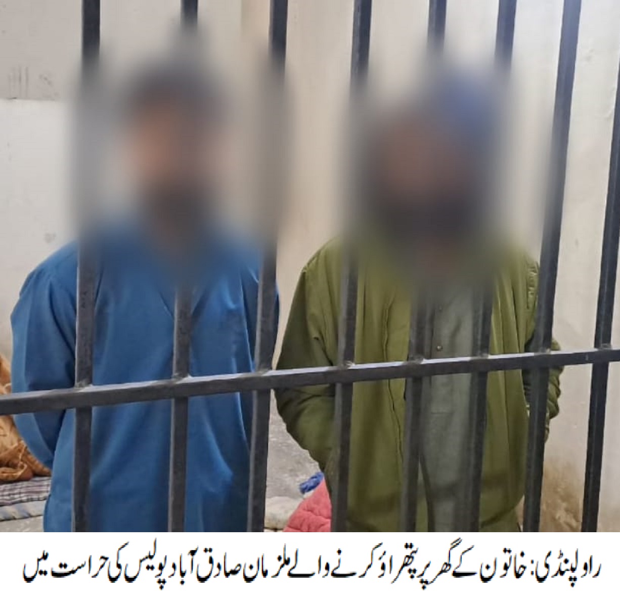 راولپنڈی( )سوشل میڈیا پرخاتون کے گھر پتھراؤ کی ویڈیو وائرل ہونے کا معاملہ، واقعہ پر سی پی او سید خالد ہمدانی کا نوٹس، ملوث ملزمان کی فوری گرفتار ی کا حکم،صادق آباد پولیس نے واقعہ کا مقدمہ درج کرکے 02ملزمان کو فوری گرفتار کرلیا۔تفصیلات کے مطابق سوشل میڈیا پر خاتون کے گھر پتھراؤ کی ویڈیو وائرل ہونے کے معاملہ پر سی پی او سید خالد ہمدانی نے نوٹس لیتے ہوئے ملوث ملزمان کی فوری گرفتاری کا حکم دیا تھا،صادق آباد پولیس نے واقعہ کا مقدمہ درج کر کے 02ملزمان کو فوری گرفتار کر لیا،ملزمان کی شناخت فہد اور علی ویلرکے ناموں سے ہوئی،سی پی او سید خالد ہمدانی کا کہنا تھا کہ خواتین اور بچوں پر تشدد ناقابل برداشت ہے،قانون کی بالا دستی کو ہر صورت یقینی بنایا جائے گا۔