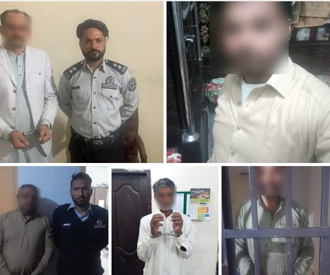 گرفتار ملزمان میں ثناء اللہ ، راشد علی بٹ، عامر حنیف, اصغر علی اور روشن علی خان شامل