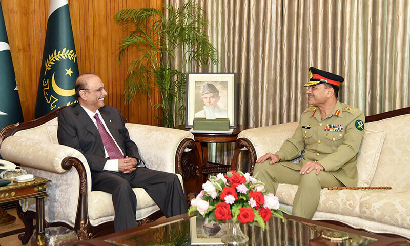 آرمی چیف جنرل سید عاصم منیر نے آج ایوان صدر میں صدر آصف علی زرداری سے ملاقات کی اور ان کے پاکستان کے صدر اور مسلح افواج کے کمانڈر ان چیف کے طور پر تقرر پر مبارکباد پیش کی اور ان کے دور صدارت کی کامیابی کے لیے نیک تمناؤں کا اظہار کیا۔
