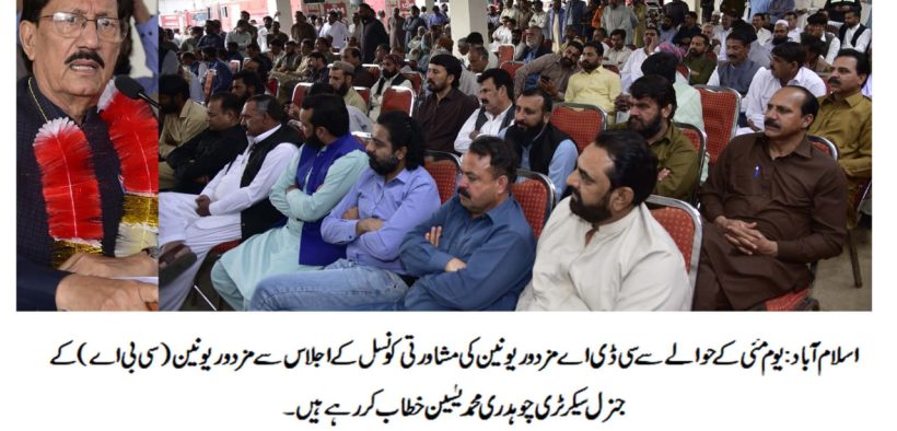 سی ڈی اے مزدور یونین،نیشنل پریس کلب اور راولپنڈی /اسلام آباد یونین آف جرنلسٹ کے زیر اہتمام یوم مئی کا پروگرام بروزبدھ بوقت صبح10:00بجے نیشنل پریس کلب میں منعقدہوگا۔