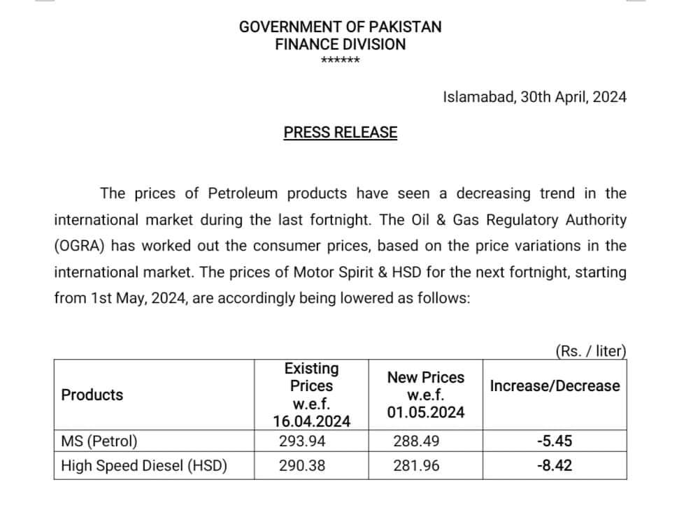 پاکستان اسلام آباد(اردو ٹائمز) پٹرول کی فی لیٹر قیمت میں 5 روپے 45 پیسے فی لٹر کمی کردی گئی۔ admin 2024-05-01 Share اسلام آباد پٹرول کی فی لیٹر قیمت میں 5 روپے 45 پیسے، ڈیزل کی فی لیٹر قیمت میں 8 روپے 42 پیسے، لائٹ ڈیزل کی فی لیٹر قیمت میں 5 روپے 63 پیسے، مٹی کے تیل کی قیمت میں 8 روپے 74 پیسے فی لٹر کمی کردی گئی۔ نئی قیمتوں کا اطلاق یکم مئی سے 15 مئی تک ہوگا
