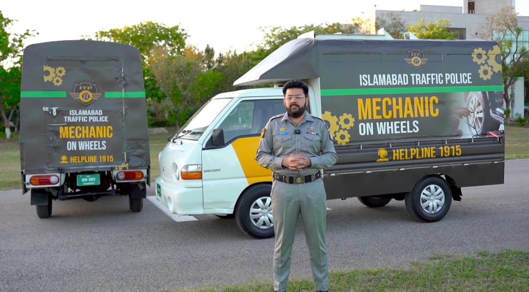 وفاقی دارلحکومت میں دوران سفر گاڑی و موٹر سائیکل کے خراب ہونے پر شہریوں کی مدد کے لئے آئی ٹی پی ©”مکینک آن ویل©”سروس کا آغاز کر دیا گیا،شہری ٹریفک پولیس کی ہیلپ لائن “1915”پر کا ل کر کے پولیس کی سروس حاصل کر سکتے ہیں،