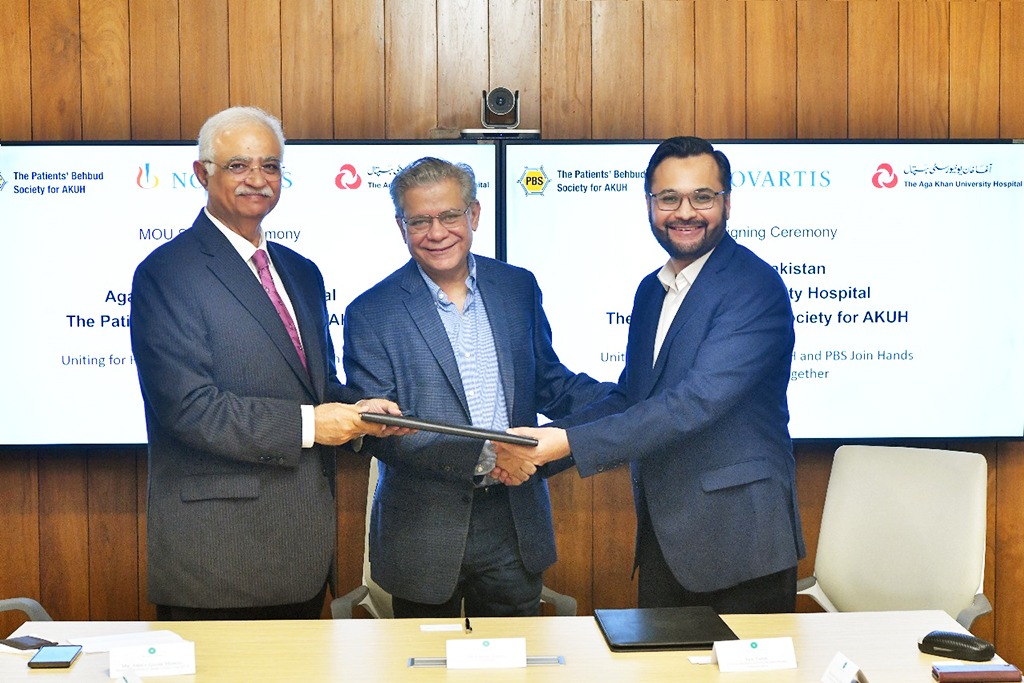 Dr. Farhat Abbas, CEO, AKUH, Mr. Arif Tahir, CEO Novartis Pakistan and Mr. Abdul Qadir Memon, President of PBS signed and exchanged the MoU. Other senior officials from both sides were also present to witness the ceremony.