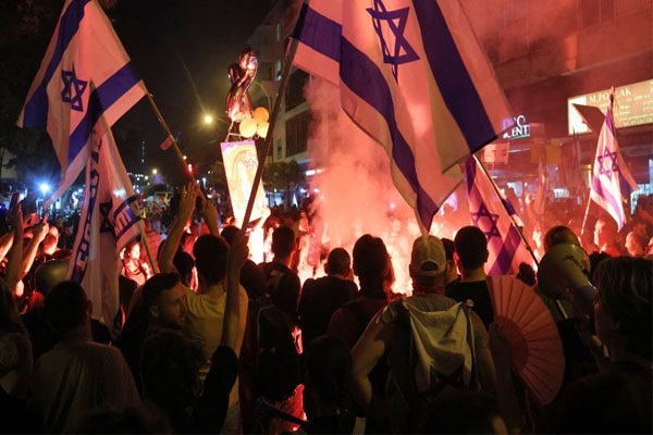 عالمی میڈیا کے مطابق نیتن یاہو حکومت کے جنگ سے نمٹنے کے خلاف تل ابیب میں ہفتہ وار بنیادوں پر بڑے احتجاجی مظاہرے ہو رہے ہیں۔بہت سے مظاہرین نے ’کرائم منسٹر‘ اور ’جنگ بند کرو‘ کے پوسٹرز اٹھا رکھے تھے۔66 سالہ کنٹریکٹر شائی ایرل نے کہا کہ ’میں یہاں اس لیے ہوں کیونکہ میں اپنے پوتے کے مستقبل سے ڈرتا ہوں۔ ان کا کوئی مستقبل نہیں ہو گا اگر ہم باہر نہیں نکلے اور اس خوفناک حکومت سے چھٹکارا حاصل نہیں کیا۔‘