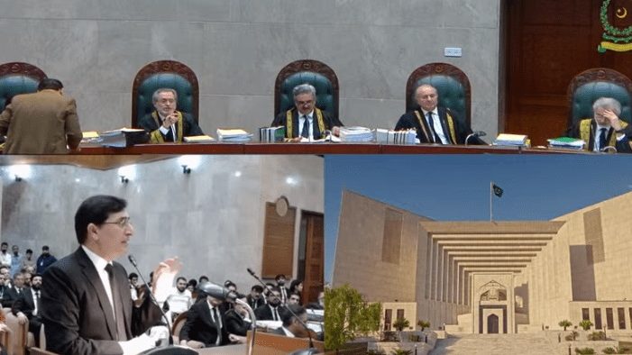 سپریم کورٹ میں چیف جسٹس قاضی فائز عیسیٰ کی سربراہی میں فل کورٹ، مخصوص نشستوں پر کیس کی سماعت کر رہا ہے۔ کیس کی سماعت براہ راست دکھائی جارہی ہے۔