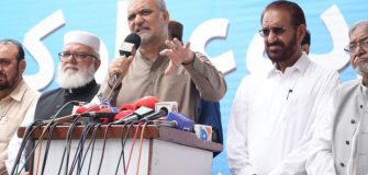 پشاور (اردو ٹائمز) پی ٹی آئی جلسہ؛ مرکزی بینر سے شاہ محمود قریشی اور مراد سعید کی تصاویر غائب