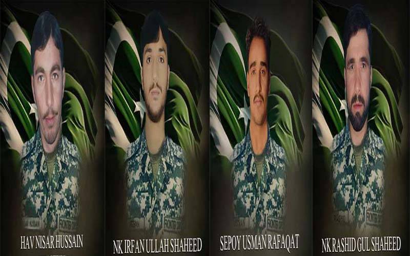 اگست2024 کو ضلع جنوبی وزیرستان میں سیکیورٹی فورسز اور خوارج کے درمیان شدید فائرنگ کے تبادلے کے نتیجے میں شہادت کے راولپنڈی(ڈیجیٹل پوسٹ)ضلع جنوبی وزیرستان میں سیکیورٹی فورسز اور خوارج کے درمیان شدید فائرنگ کے تبادلے کے نتیجے میں شہادت کے عظیم رتبے پر فائز ہونے والے حوالدار اپنے آبائی علاقوں میں مکمل فوجی اعزاز کے ساتھ سپردِ خاکعظیم رتبے پر فائز ہونے والے حوالدار نثار حسین شہید (عمر: 34 سال، ساکن ضلع کرم)، نائیک راشد گل شہید (عمر: 34 سال، ساکن ضلع کرم)، نائیک عرفان اللہ خان شہید (عمر: 30 سال، ساکن ضلع لکی مروت) اور سپاہی عثمان رفاقت شہید (عمر: 21 سال، ساکن ضلع ہری پور ) اپنے آبائی علاقوں میں مکمل فوجی اعزاز کے ساتھ سپردِ خاک