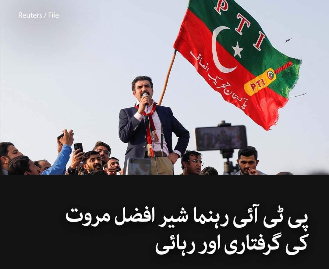 پاکستان تحریک انصاف (پی ٹی آئی) کے رہنما شیر افضل مروت کو اسلام آباد سے حراست میں لیے جانے کی اطلاعات ہیں۔ شیر افضل مروت کے ایکس اکاؤنٹ پر شیئر کیے گئے بیان کے مطابق پولیس شیر افضل مروت کو گرفتار کرکے گولڑہ تھانے لے گئی ہے۔ بعد ازاں پولیس نے شیر افضل مروت کو تھانے سے جانے کی اجازت دے دی۔ پی ٹی آئی اور شیر افضل مروت کے درمیان اختلافات کی خبریں سامنے آتی رہی ہیں۔ تاہم گزشتہ ہفتے شیر افضل مروت نے راولپنڈی کی اڈیالہ جیل میں قید بانی پی ٹی آئی عمران خان سے ملاقات کی تھی جس کے بعد انہوں نے 22 اگست کو اسلام آباد میں جلسے کا اعلان کیا تھا اور کہا تھا کہ اگر اب کوئی نو مئی ہوا تو اس کے ذمہ دار ہم ہوں گے اور ہم سب حکمتِ عملی وہ بنائیں گے۔ البتہ تحریکِ انصاف نے آج اسلام آباد میں ہونے والا اپنا جلسہ ملتوی کردیا ہے۔