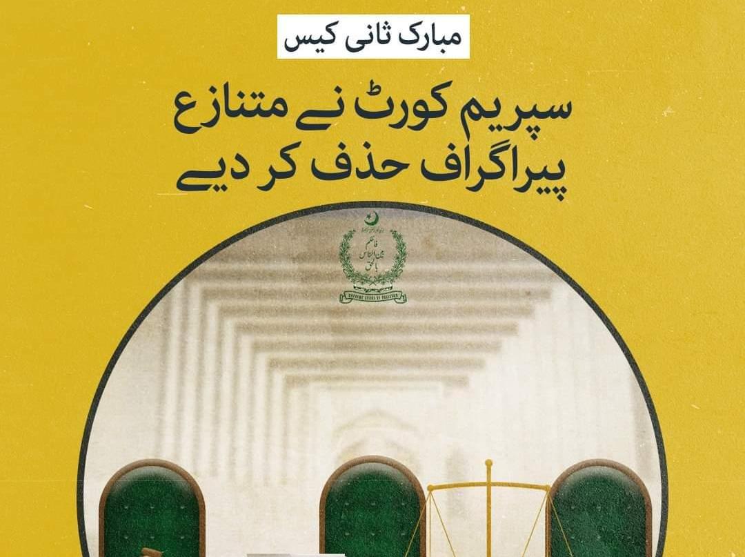 سپریم کورٹ نے احمدی کمیونٹی کے شخص مبارک احمد ثانی کی ضمانت کیس کے فیصلے سے متعلق وفاقی حکومت کی درخواست منظور کرتے ہوئے ایسے پیراگراف حذف کر دیے ہیں جن پر حکومت اور مذہبی جماعتوں کی جانب سے اعتراضات کیے گئے تھے۔