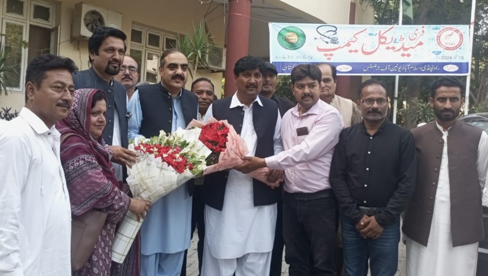 Senator Nasir Butt, a senior leader of Pakistan Muslim League-Nawaz, who participated in the medical camp as a special guest, said that the journalist community generally has to face mental pressure, due to which their families are also affected, in this era of inflation and busyness. He payed tribute to the Rawalpindi Islamabad Union of Journalists, who organized a medical camp for journalist community and their families. On this occasion RIUJ President Tariq Ali Work, Joint Secretaries Gulzar Khan and Mujahid Naqvi, Members Governing Body Rizwan Gilani, Ghafran Chishti, Asma Butt, Shebabt, Abdullah Butt RIUJ former presidents Abid Abbasi, Aamir Sajjad Shah, senior journalist Gul Qaiser Khan, Latif Adil and others were present. RIUJ President Tariq Ali Wirk and Senior Joint Secretary Gulzar Khan said that the union has striven for freedom of press, freedom of expression, civil liberties, human rights and supremacy of democracy and despite severe difficulties, Duties fulfilled RIUJ will continue to organize medical camps for its members and their families in the future.