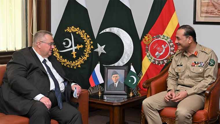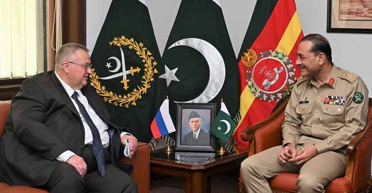 آرمی چیف جنرل سید عاصم منیر نے روس کے ساتھ روایتی دفاعی تعاون کو فروغ دینے کے عزم کا اعادہ کیا، فریقین نے سکیورٹی اور دفاعی تعاون کو مضبوط بنانے کے عزم کا اعادہ کیا۔پاک فوج کے شعبہ تعلقات عامہ کے مطابق روسی نائب وزیراعظم نے دہشت گردی کیخلاف جنگ میں پاکستان کی مسلح افواج کے کردار کی تعریف کی۔ آئی ایس پی آر کے مطابق روسی نائب وزیراعظم نے خطے میں امن و استحکام کیلئے پاکستانی افواج کی کوششوں کو بھی سراہا۔