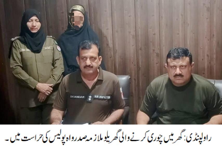 راولپنڈی(اردو ٹائمز) ایس ایچ او تھانہ صدر واہ محسن شاہ کی ہمراہ پولیس ٹیم کارروائی، 3 روز قبل گھر میں چوری کرنے والی گھریلو ملازمہ گرفتار