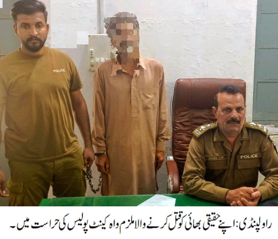 راولپنڈی( )ایس ایچ او واہ کینٹ راجہ عثمان کی زیرنگرانی پولیس ٹیم کی اہم کاروائی، دو روز قبل اپنے حقیقی بھائی کو قتل کرنے والا ملزم گرفتار۔ تفصیلات کے مطابق واہ کینٹ پولیس نے کاروائی کرتے ہوئے دو روز قبل اپنے حقیقی بھائی کو قتل کرنے والے ملزم نادر خان کو گرفتار کر لیا، ملزم نادر خان نے درانتی کے وار سے اپنے بھائی جاوید کو قتل کیا تھا،واقعہ کا مقدمہ مقتول کے بھائی کی مدعیت میں درج کیا گیا تھا،ملزم واردات کے بعد فرار ہو گیا تھا جسے ہیومن انٹیلی جینس سمیت تمام ذرائع بروئے کار لا کر گرفتار کیا گیا، ایس پی پوٹھوہار ناصر نوازکا کہنا تھا کہ ملزم کو ٹھوس شواہد کے ساتھ چالان کر کے قرار واقعی سزا دلوائی جائے گی۔