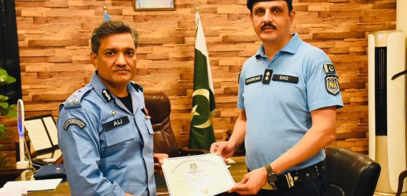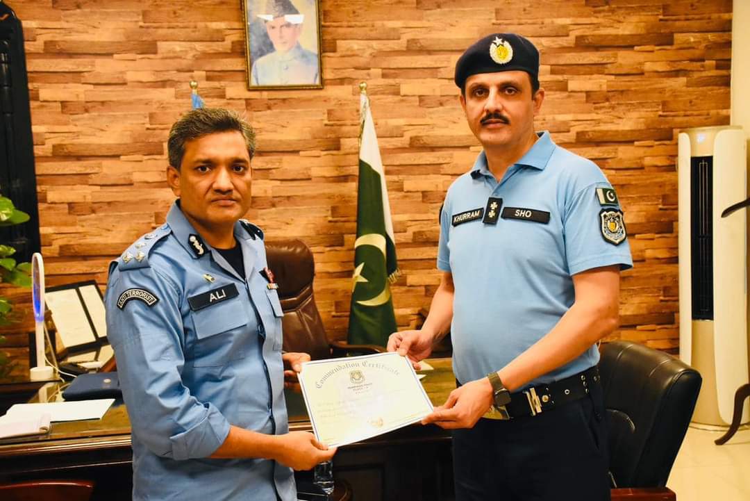 اسلام آباد(اردو ٹائمز) ڈکیتی اور راہزنی کی وارداتوں میں ملوث ملزمان کی گرفتاری اور اعلیٰ کارکردگی کا مظاہرہ کرنے پر ایس ایچ او تھانہ کرپا سب انسپکٹر خرم شہزاد اور اے ایس آئی سعید احمد کو ڈی آئی جی اسلام آباد سید علی رضا نے نقد انعام اور تعریفی اسناد سے نوازا۔