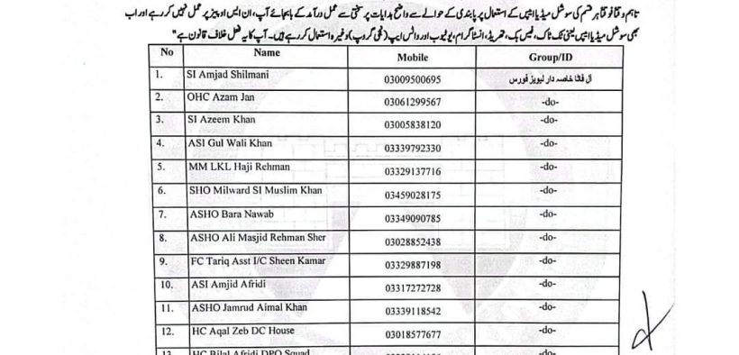 یاد رہے کہ آئی جی پولیس خیبرپختونخواہ نے پولیس افسران و اہلکاروں کی سوشل میڈیا استعمال پر پابندی عائد کی ہے۔