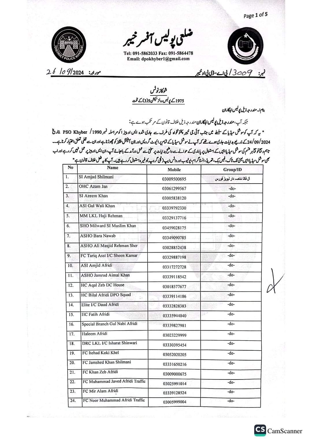 ڈی پی او خیبر رائے مظہر اقبال نے آئی جی پولیس خیبرپختونخوا کے احکامات کے باوجود سوشل میڈیا استعمال کرنے پر 146 پولیس اہلکاروں کو شوکاز نوٹس جاری کردی۔