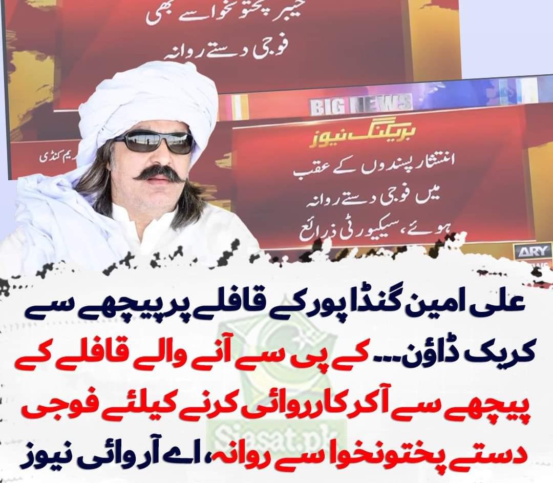 پاکستان اسلام آباد(اردو ٹائمز) علی امین گنڈا پور کے قافلے پر پیچھے سے آ کر کریک ڈاؤن۔۔۔ admin 2024-10-05 Share اسلام آباد علی امین گنڈا پور کے قافلے پر پیچھے سے آ کر کریک ڈاؤن۔۔۔ کے پی سے آنے والے قافلے کے پیچھے سے آ کر کارروائی کرنے کیلئے فوجی دستے خیبر پختونخوا سے روانہ،