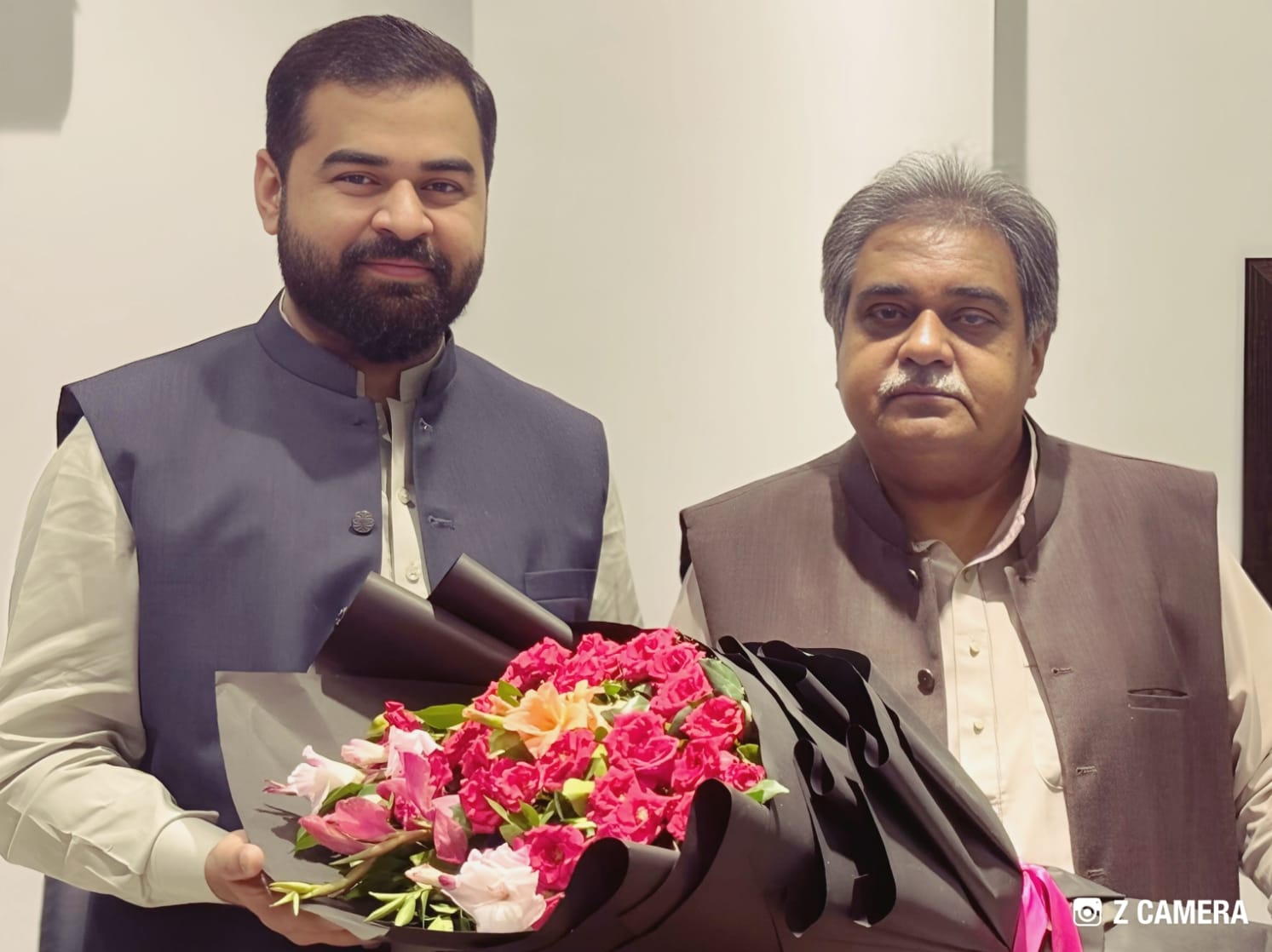 پیرسیدسہیل بخاری گدی نشین حضرت سید پیر چشتی اولیاء سخی سرکار مکی رحمۃاللہ علیہ چشت نگر مناواں لاہور خرم شہزاد کو الغنی ڈویلپرز کے ڈائریکٹر سیلز کا عہدہ سنبھالنے پر مبارکبادیتے ہوئے گلدستہ پیش کر رھے ہیں -a