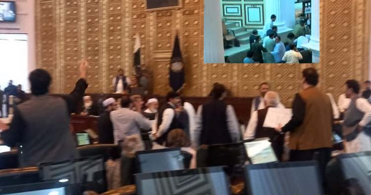 پولیس کے ہاتھوں گرفتار ہونے والوں میں رکن اسمبلی اقبال وزیر، بھتیجا محب اللہ اور رشتے دار نقیب اللہ شامل ہے۔واضح رہے کہ اسمبلی اجلاس میں بات کرنے کا موقع نہ ملنے پر حکومت اور اپوزیشن اراکین میں تلخ جملوں کا تبادلہ ہوا اور پھر معاملہ ہاتھا پائی تک پہنچ گیا ہے، اس دوران دونوں فریقین کی جانب سے سخت زبان کا استعمال بھی کیا گیا۔