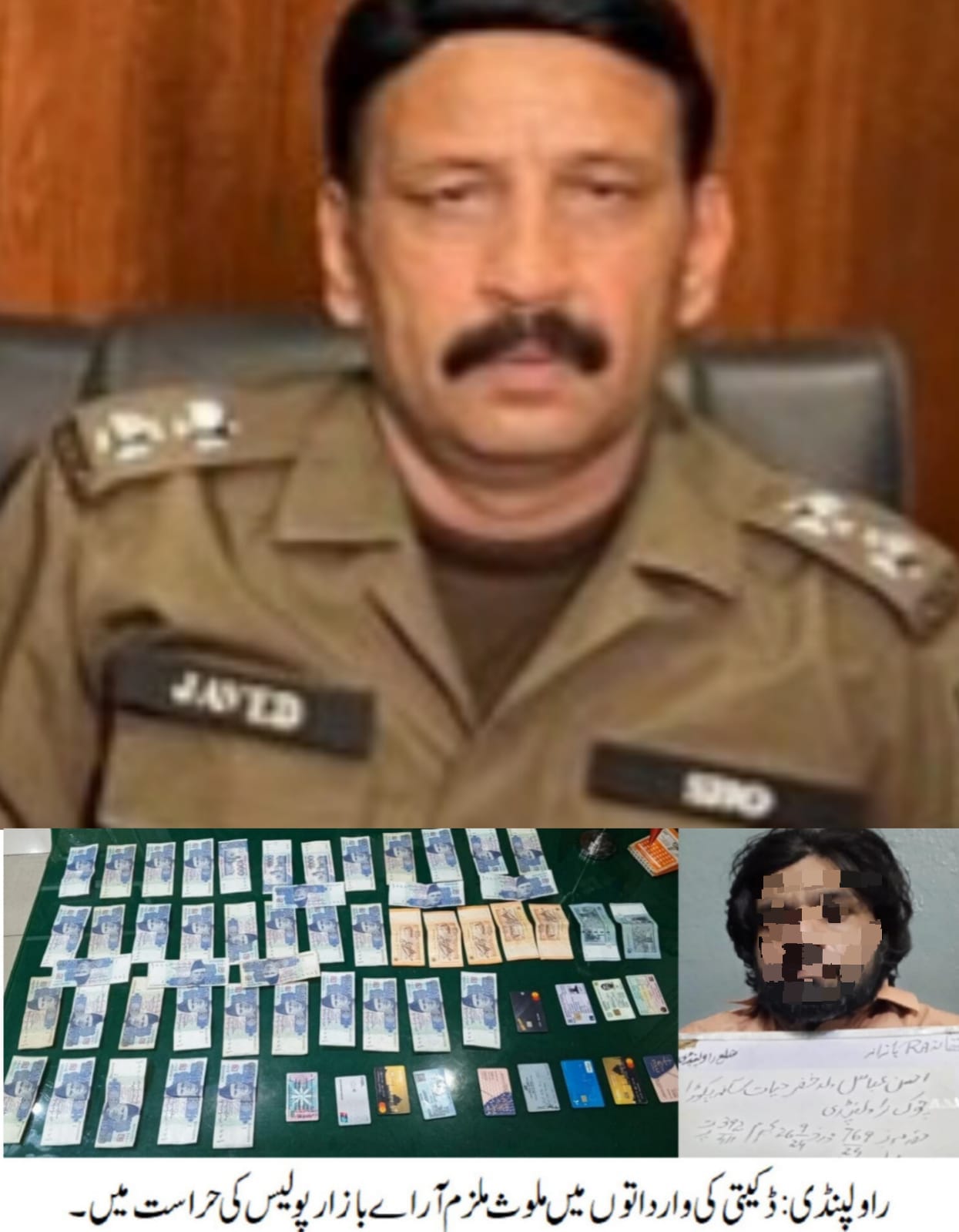 راولپنڈی (اردو ٹائمز) ایس ایچ او تھانہ آر اے بازار جاوید سلہریا کی زیرنگرانی پولیس ٹیم کی موثر تفتیش، ڈکیتی کی وارداتوں میں گرفتار ملزم سے ملکی و غیر ملکی کرنسی برآمد