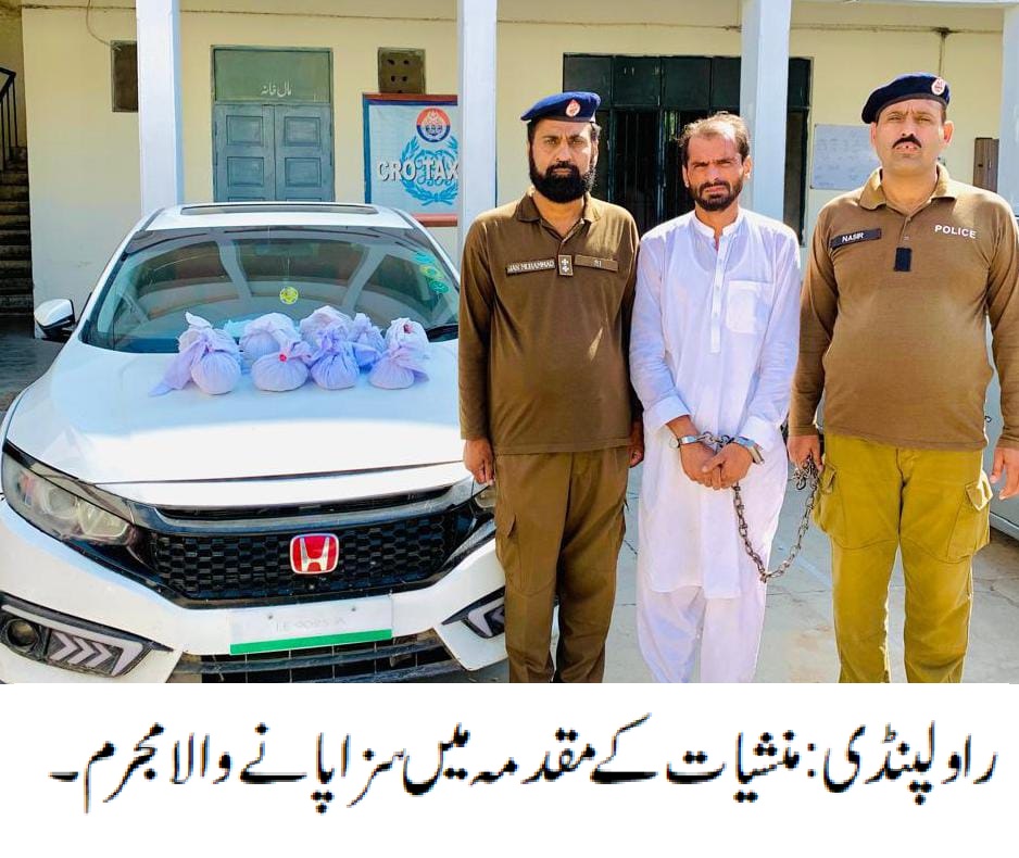 راولپنڈی پولیس کی موثر پولیسنگ،منشیات سپلائر کو معزز عدالت سے 20 سال قید کی سزا،مجرم وقار کو 8 لاکھ روپے جرمانہ کی سزا بھی سنائی گئی۔تفصیلات کے مطابق منشیات سپلائر کو معزز عدالت نے 20 سال قید کی سزا سنا دی،مجرم وقار کو 8 لاکھ روپے جرمانے کی سزا بھی سنائی گئی،مجرم وقار سے 10 کلو گرام چرس برآمد ہونے پر تھانہ ٹیکسلا پولیس نے مقدمہ درج کیا تھا، ٹھوس شواہد کے ساتھ چالان عدالت کرنے اور موثر پیروی کے پیش نظر معزز عدالت نے مجرم کو قرار واقعی سزا سنائی، سی پی او سید خالد ہمدانی نے ایس ایس پی انویسٹی گیشن اور تفتیشی و لیگل ٹیموں کو شاباش دیتے ہوئے کہا کہ منشیات سپلائرز کی سزایابی منشیات کے ناسور کے خاتمے کے لئے اہم ہے۔