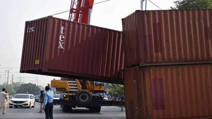 اسلام آ باد (آئی پی ایس )انتظامیہ کی جانب سے ڈی چوک بلیو ایریا کے اطراف میں ایک بار پھر کنٹینرز لگا کر علاقے کو بند کر دیا گیا ہے۔اسلام آباد کی انتظامیہ نے بلیو ایریا کو خیبر پلازہ کے پاس سے ڈی چوک آنے والے راستے کو کنٹینرز لگا کر بند کر دیا ہے۔ نادرا چوک سے ڈی چوک آنے والے راستے کو کنٹینر لگا کر بند کر دیا گیا جبکہ ڈی چوک سے ریڈ زون میں جانے والے راستوں پر پہلے سے کنٹینرز موجود ہیں۔