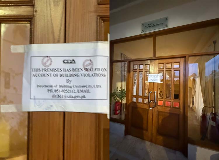 ڈی جی بلڈنگ کنٹرول سی ڈی اے فیصل نعیم کے مطابق تکمیل سرٹیفکیٹ کے بغیر عمارت عوام کی زندگیوں کے لیے خطرہ ہے،میریٹ ہوٹل نے بیسمنٹ کو غیر قانونی طور پر اسٹوریج کے طور پر استعمال کیا، نجی ہوٹل میں غیر قانونی مارکی قائم،میریٹ ہوٹل 16 کروڑ روپے کے واجبات کا نادہندہ نکلا، نجی ہوٹل نے گرین بیلٹ پر غیر قانونی کار پارکنگ قائم کر رکھی تھی۔