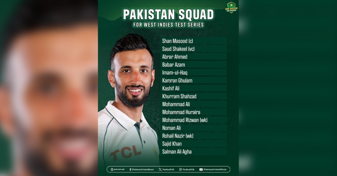 اسلام آباد (اردو ٹائمز) ویسٹ انڈیز کے خلاف ٹیسٹ سیریز کے لیے پاکستانی اسکواڈ کا اعلان