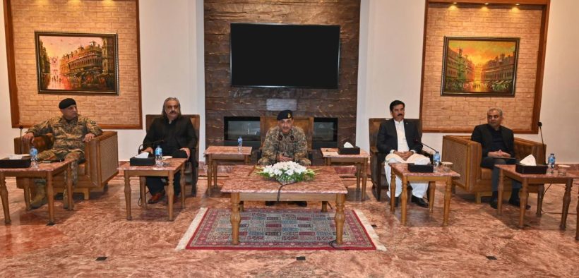 علاوہ ازیں آرمی چیف کی خیبرپختونخوا کے سیاست دانوں سے بھی بات چیت ہوئی، مختلف سیاسی جماعتوں کے رہنماأں نے مختلف امور پر اظہار خیال کیا اور مشترکہ عزم کا اظہار کیا۔
