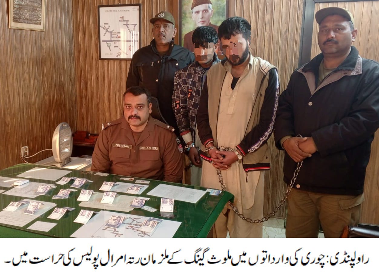 راولپنڈی (اردو ٹائمز) ایس ایچ او رتہ امرال کی زیرنگرانی ذیشان سرور اے ایس آئی کی ہمراہ پولیس ٹیم کاروائی، موٹر سائیکل و دیگر چوری کی وارداتوں میں ملوث 02 رکنی گینگ گرفتار، مسروقہ موٹر سائیکل اور رقم 16 ہزار روپے برآمد۔ تفصیلات کے مطابق رتہ امرال پولیس نے کاروائی کرتے ہوئے 02 رکنی گینگ کو گرفتار کرلیا، گرفتار ملزمان میں زبیر اور یاسر شامل ہیں، ملزمان سے مسروقہ موٹر سائیکل اور رقم 16 ہزار روپے برآمد ہوئے، ایس پی راول کا کہنا تھا کہ گرفتار ملزمان کو ٹھوس شواہد کے ساتھ چالان عدالت کرکے قرار واقعی سزا دلوائی جائے گی، منظم و متحرک گینگز کے خلاف بھرپور کاروائیاں جاری ہیں۔