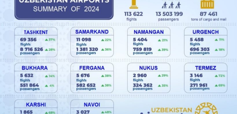 Cargo operations also witnessed substantial growth, with Uzbekistan’s airports handling 87,461 tons of freight and mail, a 23% increase compared to 2023.