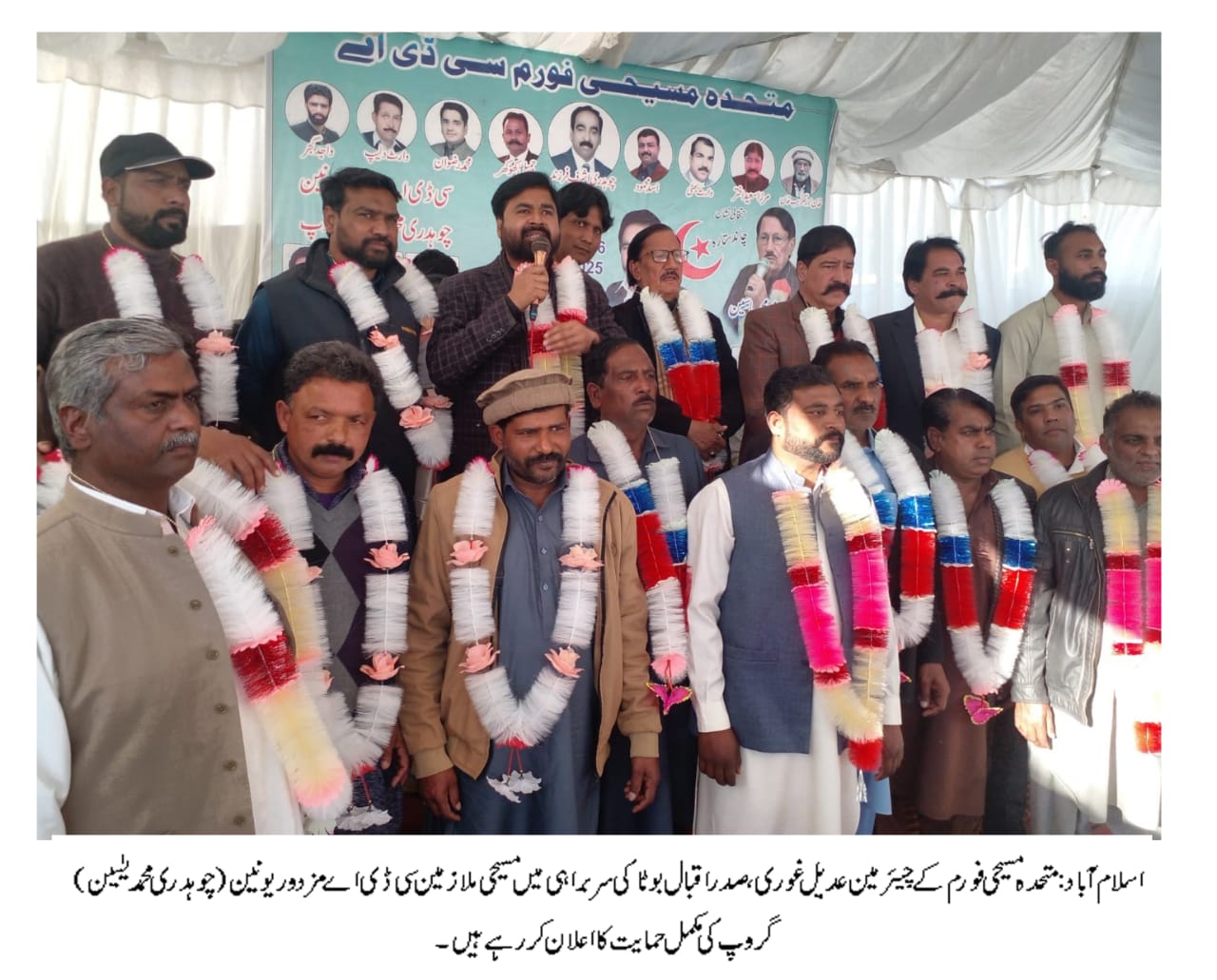 سی ڈی اے ریفرنڈم میں متحدہ مسیحی فورم کا مزدور یونین (چوہدری محمد یٰسین)گروپ کی مکمل حمایت کا اعلان۔