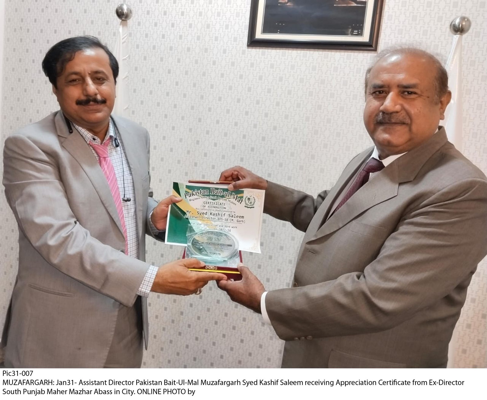 The meeting also featured a farewell ceremony in honor of the outgoing Director South Punjab, Maher Mazhar Abbas, who was recognized for his dedicated service. During the ceremony, he awarded Appreciation Certificates and Shields to several Assistant Directors in recognition of their outstanding contributions. Among them, Assistant Director Muzaffargarh, Syed Kashif Saleem, was given special recognition for his exceptional performance and dedication.
