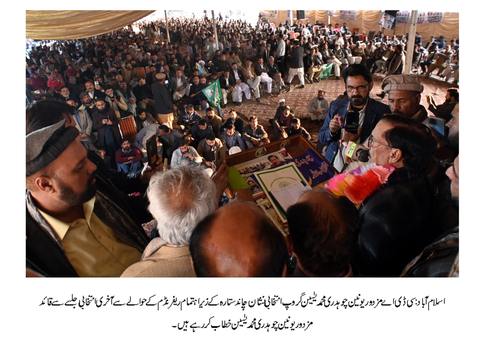 سی ڈی اے چیئرمین آفس کے انتخابی جلسے سے قائدین مزدور یونین کا خطاب۔