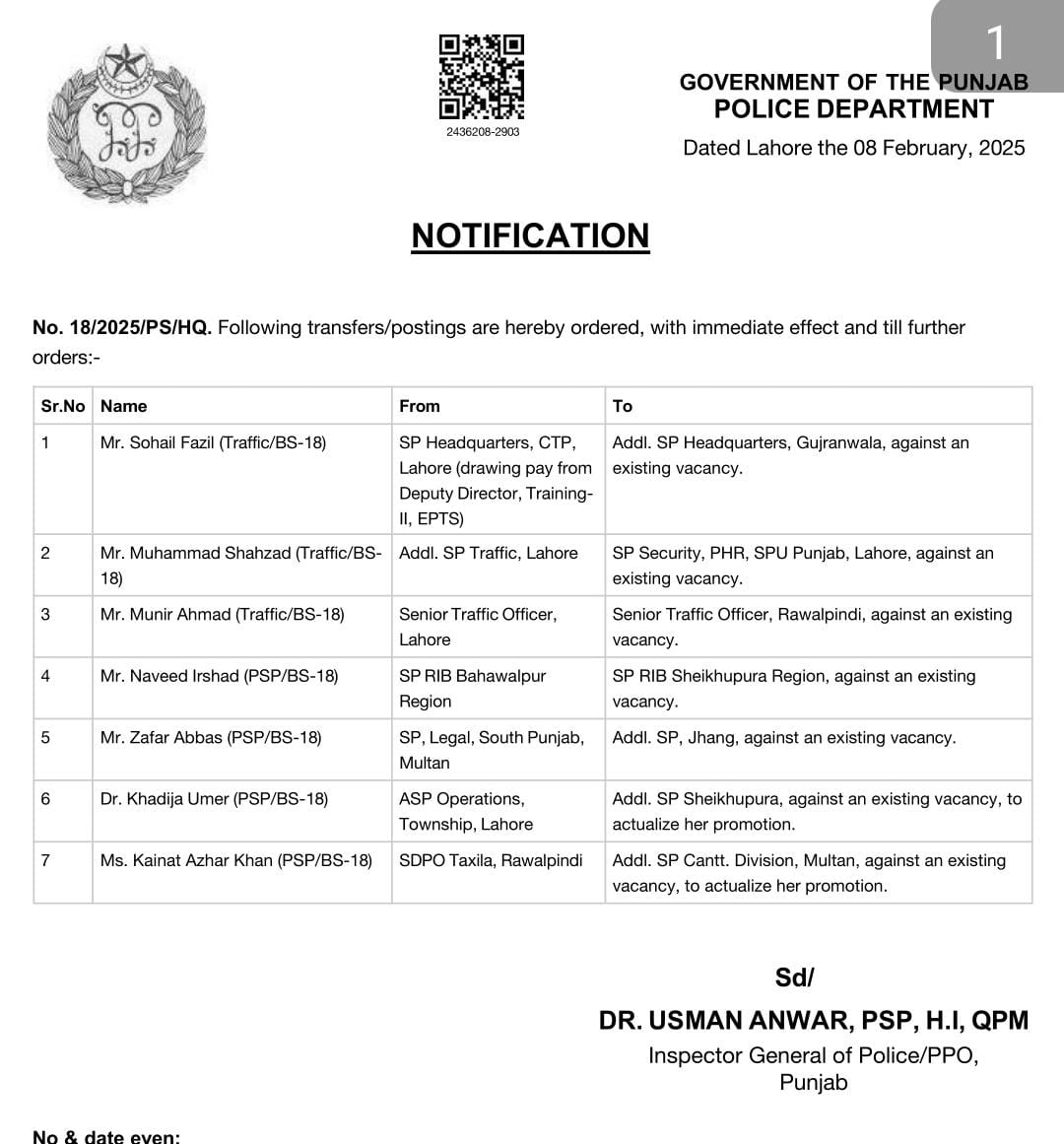 پاکستان لاہور (اردو ٹائمز) آئی جی پنجاب ڈاکٹر عثمان انور نے 7 ایس پیز کے تقرروتبادلوں کے احکامات جاری کردیئے، نوٹیفیکیشن Urdu Times 2025-02-09 Share پنجاب پولیس/ تقرروتبادلے لاہور (اردو ٹائمز) آئی جی پنجاب ڈاکٹر عثمان انور نے 7 ایس پیز کے تقرروتبادلوں کے احکامات جاری کردیئے، نوٹیفیکیشن